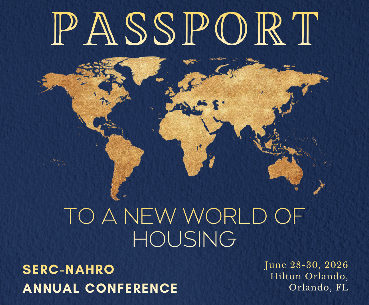 Make plans to attend the 2026 SERC-NAHRO Annual Conference: “Passport To A New World Of Housing” at the Hilton Orlando in Orlando, FL, from June 28 to June 30, 2026.